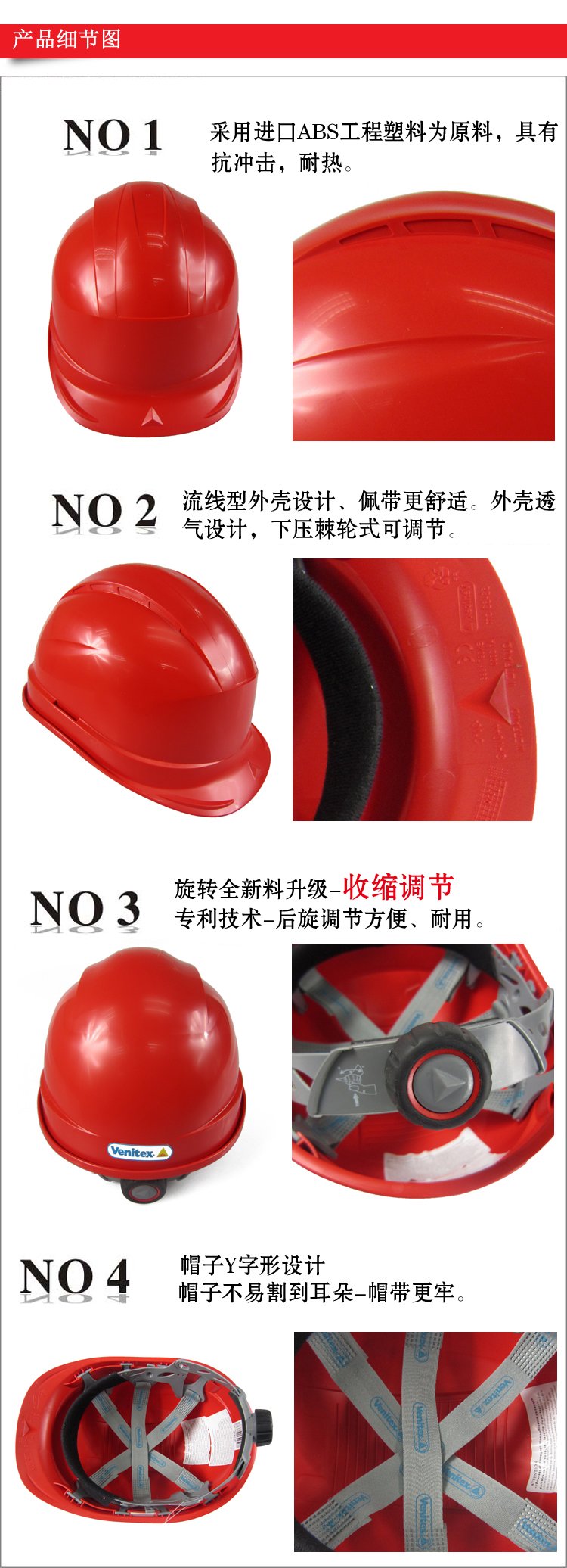 抗紫外線高密度聚丙烯安全帽。下壓棘輪式可調(diào)節(jié)。排汗帶。尺寸:53-63cm