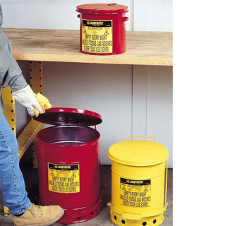 符合美國OSHA 要求的油漬廢品罐是在使用浸有溶劑的布和抹布時的必備品。浸有溶劑、稀釋劑、亞麻籽油、可燃粘合劑和其他易燃液體的抹布和布如果隨意拋棄,將有極大的火災隱患。經(jīng)過專門設計的蓋子打開的角度不超過60度,不使用時將保持關(guān)閉,將內(nèi)容物與火源隔離,限制氧氣量,因此可有效地消除自燃隱患。圓形的構(gòu)造和加高的罐底可促進罐體周圍的空氣流通,從而達到散熱以及減少因水分聚集而生銹的目的。耐用的鋼制構(gòu)造采用耐化學腐蝕的粉末涂料涂飾。