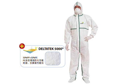 限次性無(wú)紡布連體服(膠條型),無(wú)硅樹脂材料彈性兜帽、袖口、腳踝口,不干膠粘合門襟,膠條防水密封縫線,防粉塵微粒,