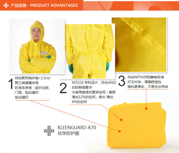 產品名稱:金佰利 A70化學防護服(大號)9813