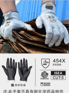- 符合歐洲EN388,5級抗割性能