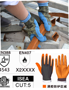 - 機械防護性能和舒適的重型抗切割手套,10針BLADEX5+阻燃纖維針織內膽,