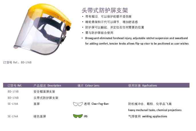 名稱:霍尼韋爾BD-173B面屏頭盔支架(SE-173A,SE-174A可選面屏)