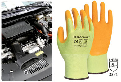 18 針黃色HPPE 手套芯掌浸高耐磨乳膠出紋