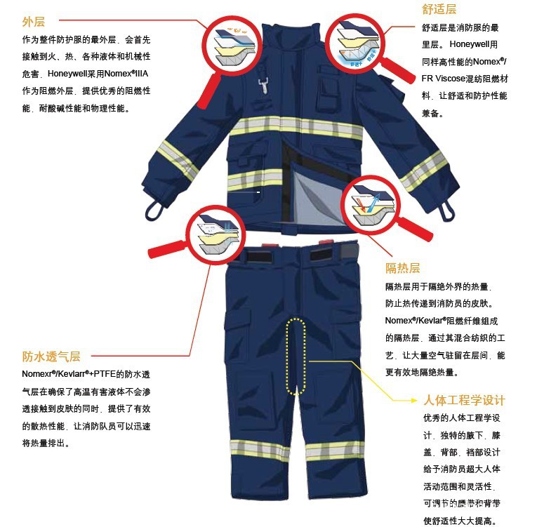 ●采用高性能織物和人體工學設計,確保消防員在進入火場可以高效執(zhí)行任務并不受火焰和高溫的傷害