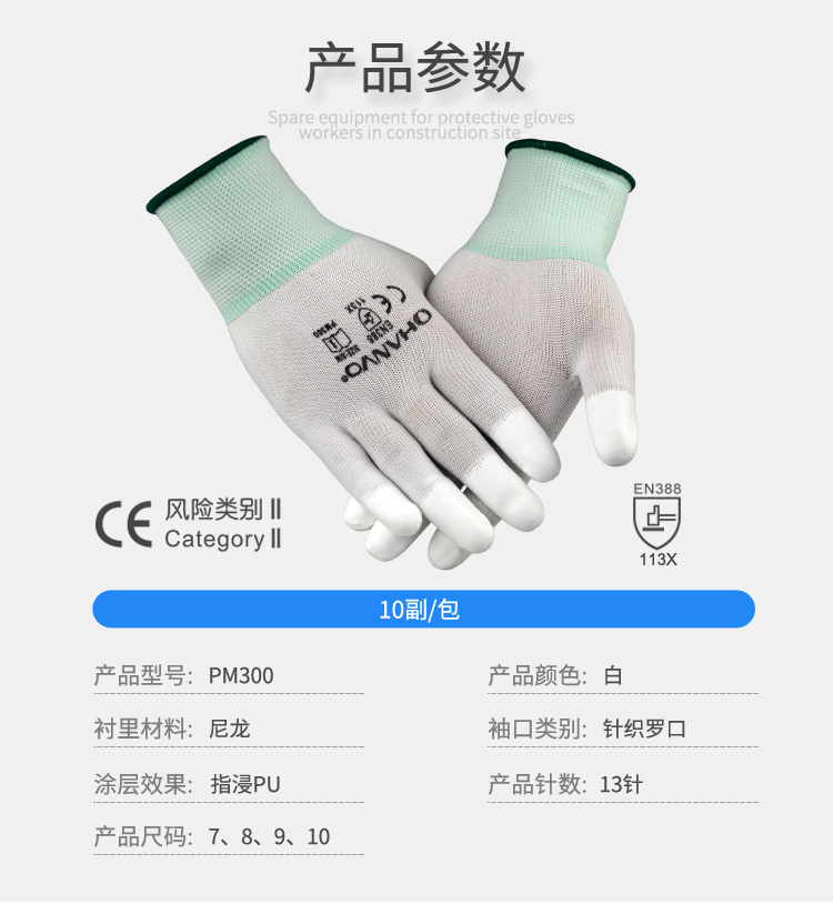 產(chǎn)品名稱:恒輝 PM300 PU涂指作業(yè)手套