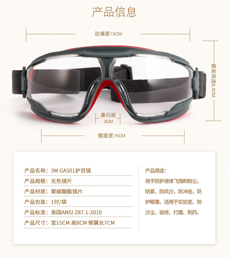 產(chǎn)品名稱:3M GA501 防霧防塵防液體飛濺護(hù)目鏡(GA500系列眼罩)