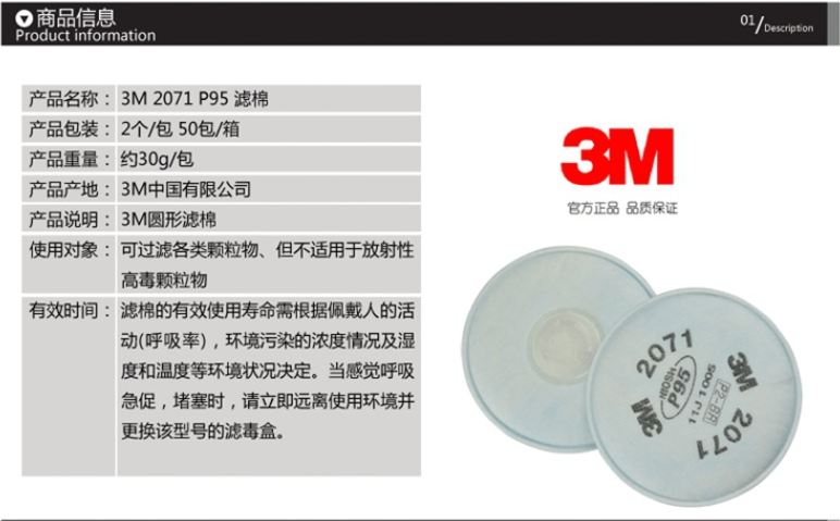 產(chǎn)品名稱:3M 2071 P95 粉塵/霧氣濾棉