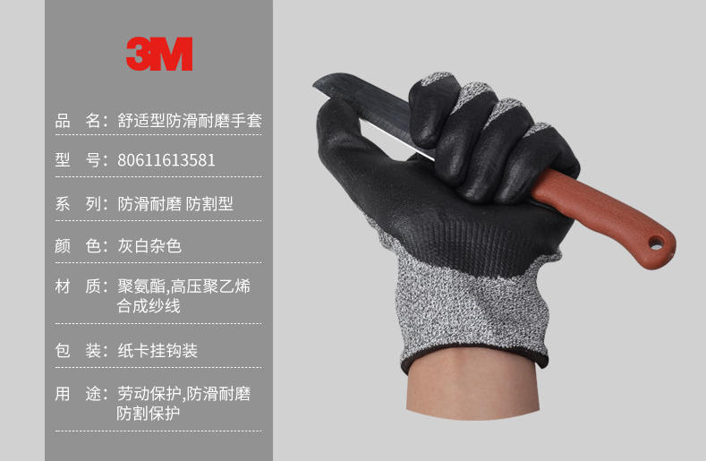 產(chǎn)品名稱:3M 舒適型防滑耐磨手套 防割型 L3 M 手套