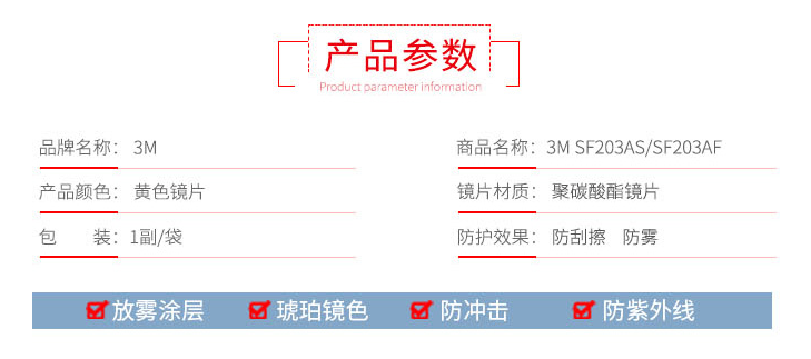 產(chǎn)品名稱:3M SF203AS黃色防刮擦防藍(lán)光防護(hù)眼鏡