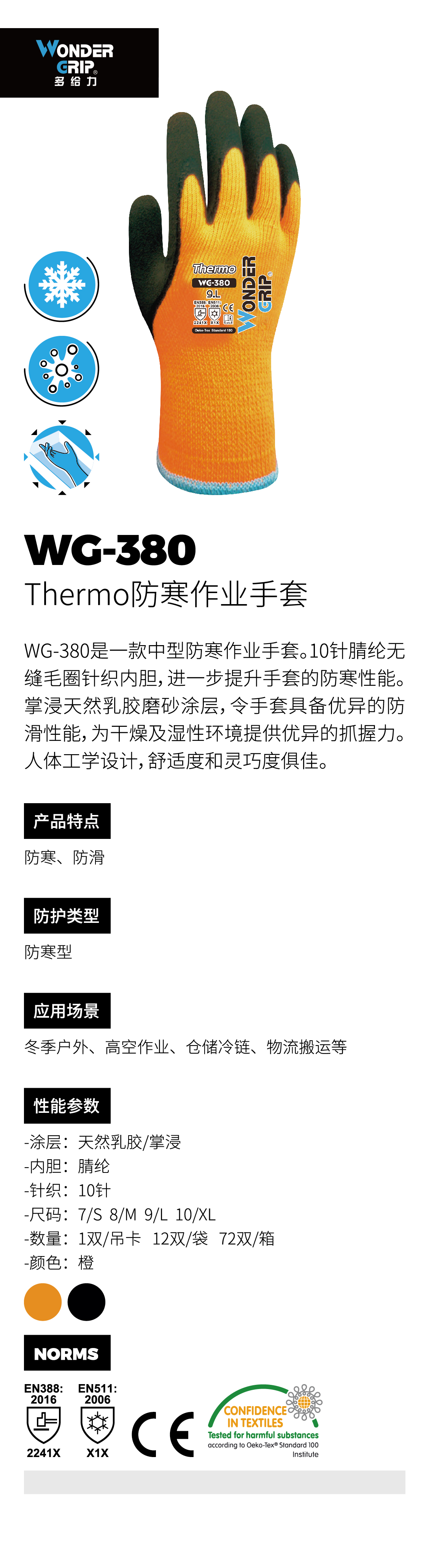 Wonder Grip? 多給力? 防寒系列手套平衡了乳膠涂層的厚度和柔軟度,令佩戴更舒適,結(jié)合各類防寒材料,為低溫環(huán)境作業(yè)提供優(yōu)良的保暖與防護(hù)