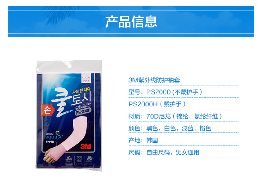 產(chǎn)品名稱:3M 紫外線防護(hù)袖套PS2000防曬袖套