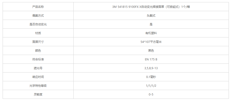 產(chǎn)品名稱:3M 541815 9100FX X自動變光焊接面罩(可掀起式)1個/箱
