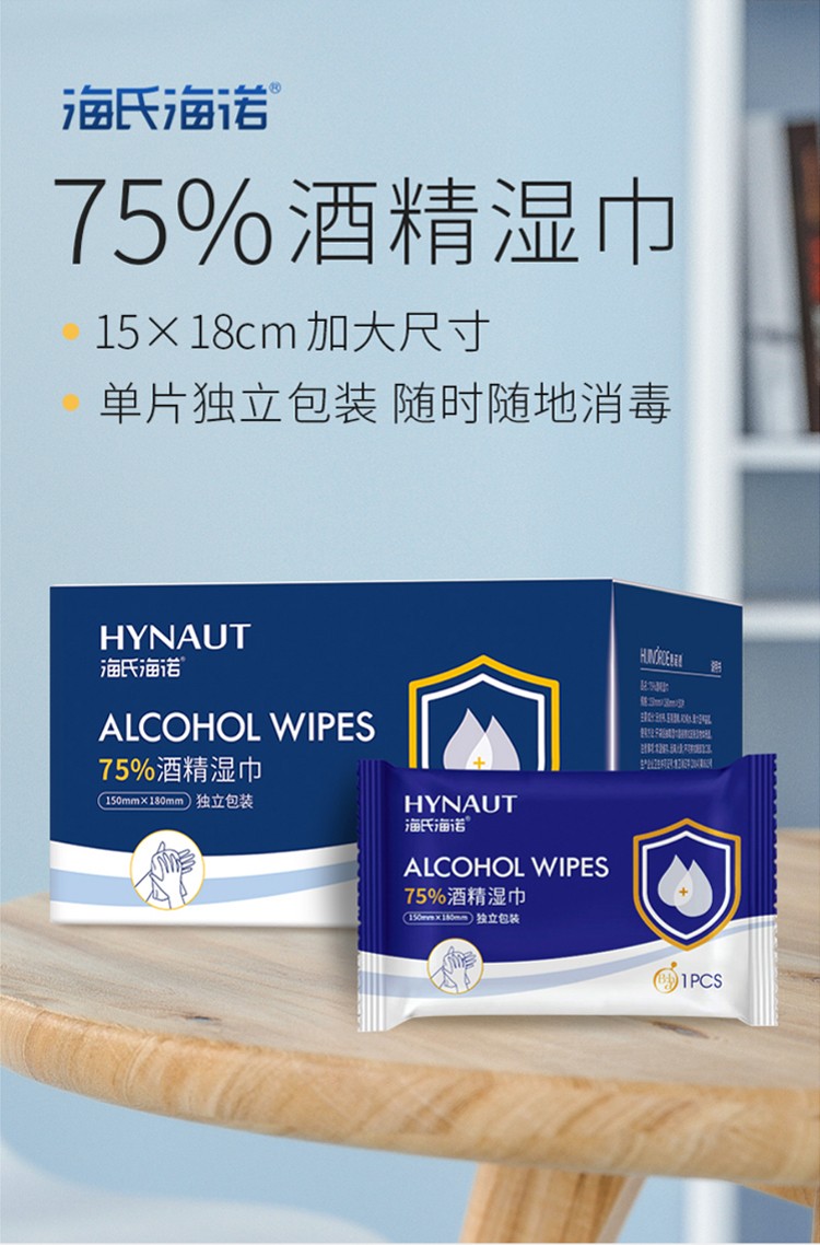 產(chǎn)品名稱:海氏海諾 75%酒精濕巾單片獨立包裝(50片/盒)