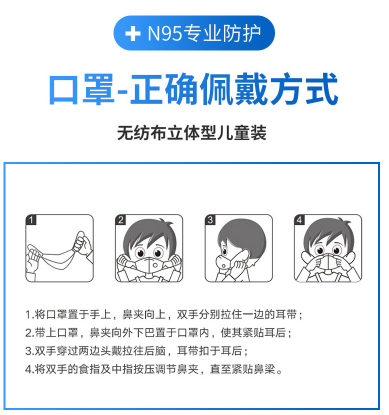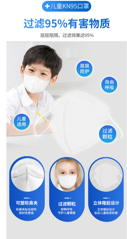 產(chǎn)品名稱:海氏海諾 A067 KN95 一次性防護(hù)兒童口罩耳戴式四層