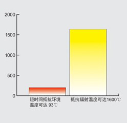 以上圖示為Lakeland工業(yè)隔熱服針對(duì)輻射熱和環(huán)境熱防護(hù)性能的相對(duì)比較。所顯示溫度值為試驗(yàn)室數(shù)據(jù)的推測(cè)數(shù)值,并不能用于代表此防護(hù)服裝實(shí)際使用于這些溫度環(huán)境中。使用者的具體身體狀況,工作環(huán)境,以及實(shí)際工作性質(zhì)都會(huì)對(duì)防護(hù)溫度及暴露時(shí)間產(chǎn)生不確定性。